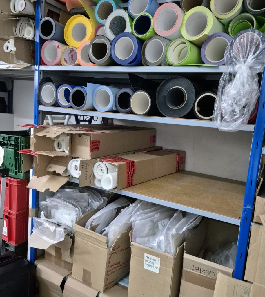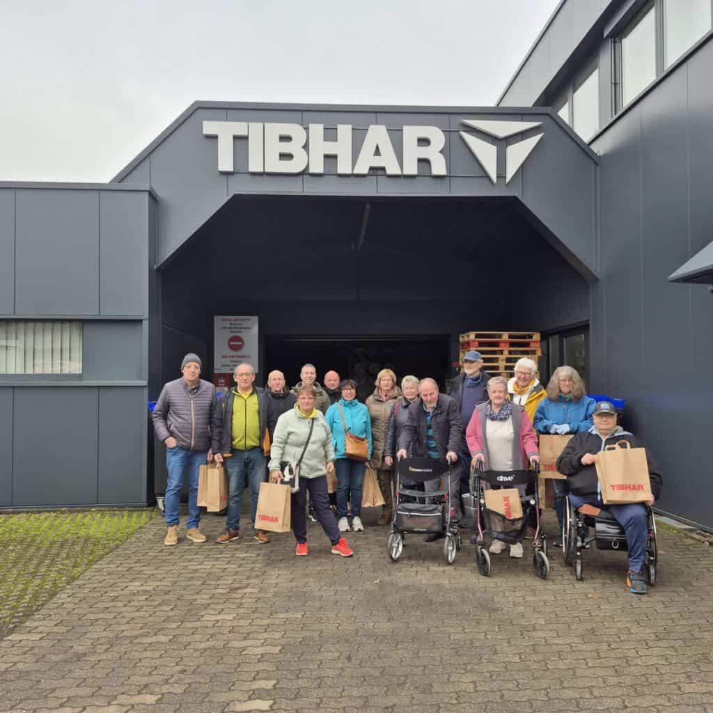 In gut 2 Stunden erkundeten wir die Welt des Tischtennis! Keiner dachte, daß es so viel an Tischtennismaterial gibt. Allein die Beläge der Schläger und die verschiedenen Hölzer füllten eine Halle. Die gut gefüllten Regale mit T-Shirts, Trainingsanzügen, Hosen, Röcken Stümpfen bis hin zu Boxershorts lies nicht nur die Frauenherzen höherschlagen. In den Hallen der Tischtennisplatten, Ballroboter, Bodenbelägen war das Staunen nicht geringer.